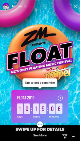 Take a look at this live timer utilised to share their upcoming ‘Float’ festival, incorporating a call to action into the post (see right). It’s this kind of use of ephemeral content to direct traffic to websites, and essential result in a conversion that will lead social content creation in 2019.